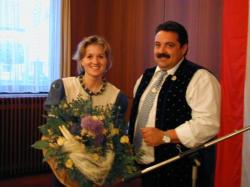 Auch unsere Fahnenbraut, die es den "Rittern" offensichtlich angetan hatte, wurde mit einem Blumenstrauß beschenkt.